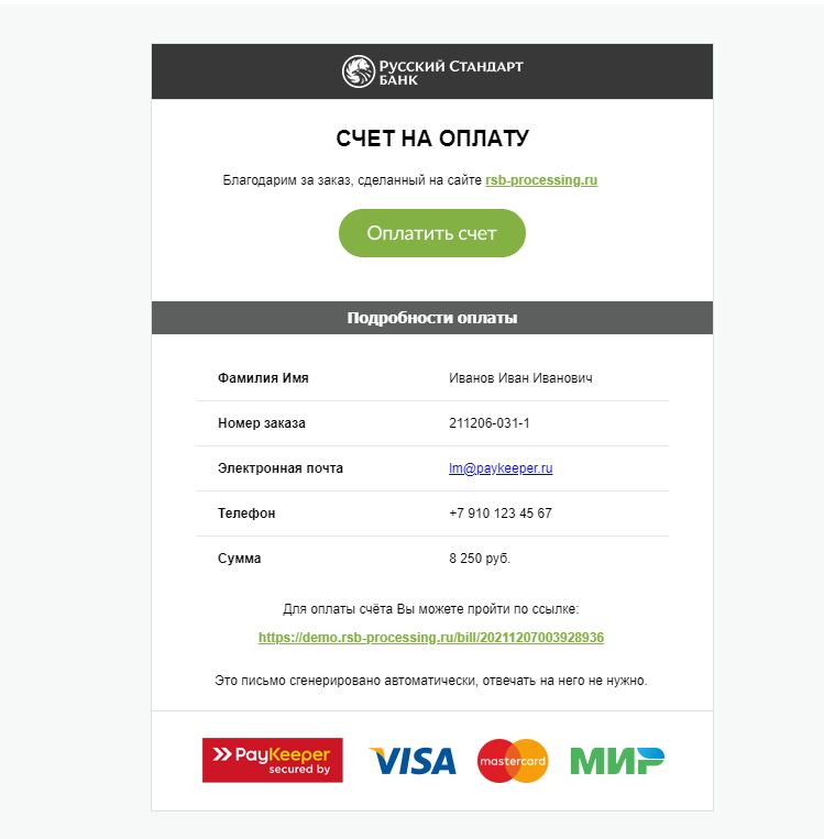 6. После сверки данных с менеджером вам будет выслана ссылка на оплату. Адрес электронной почты, на который будет отправлена ссылка, нужно озвучить во время звонка.