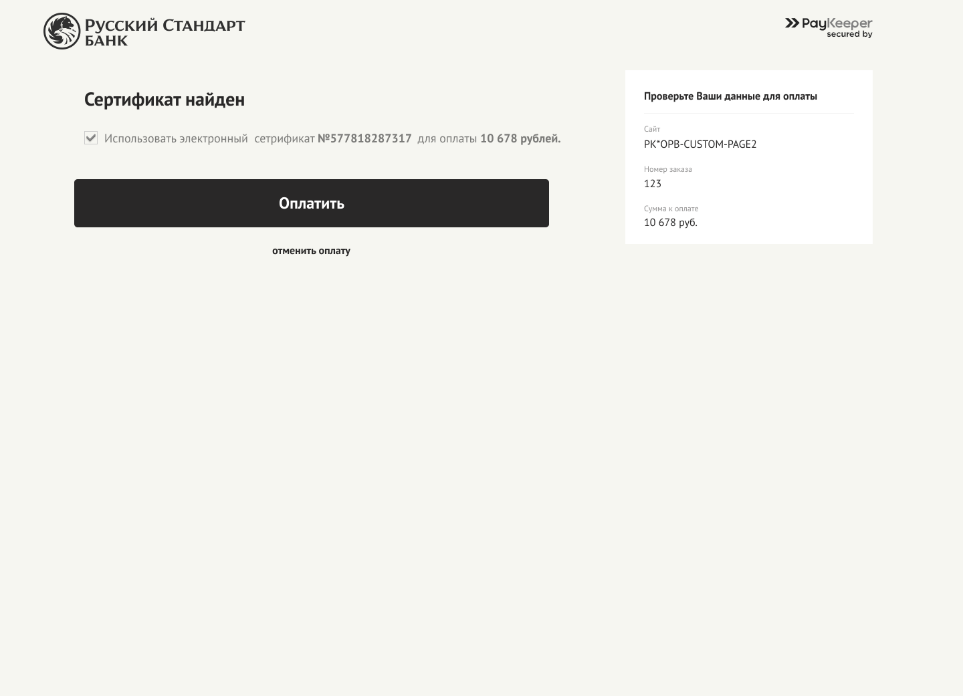 Оплата электронным сертификатом